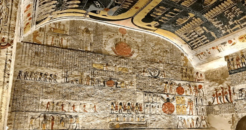 O Vale dos Reis, em Luxor, que está escondido e scavedo na colinas de pedra calcária da aldeia ELGurna . O vale dos reis foi o cemitério antigo dos faraós durante o Novo Império egípcio quando decidiu parar de fazer edifícios altos e enormes como as pirâmides para